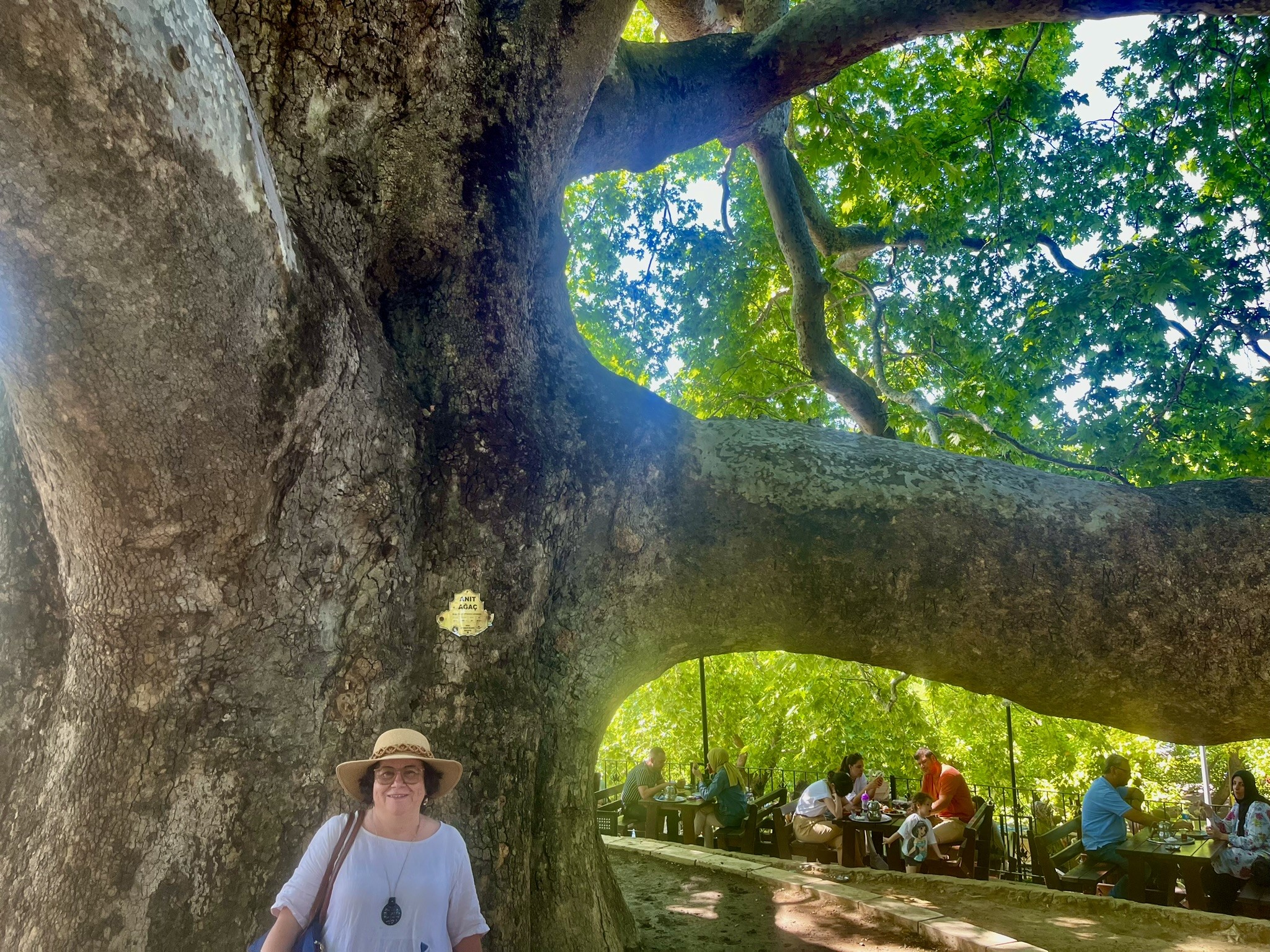 Aşağıda otele varmadan 600 yıllık tarihi İnkaya Çınarında mola verdik. Muhteşem ağacın 13 ana kolu öyle bir uzanmış ki gölgesinde bir yığın kişi rahatlıkla oturup çaylarını yudumluyor. 35 m yüksekliğinde bu anıt ağaç 9,2 metrelik çevresiyle Türkiye’nin en yaşlı ağaçlarından biri adeta bir abide. Yüce Çınar sanki tek başına bir orman.