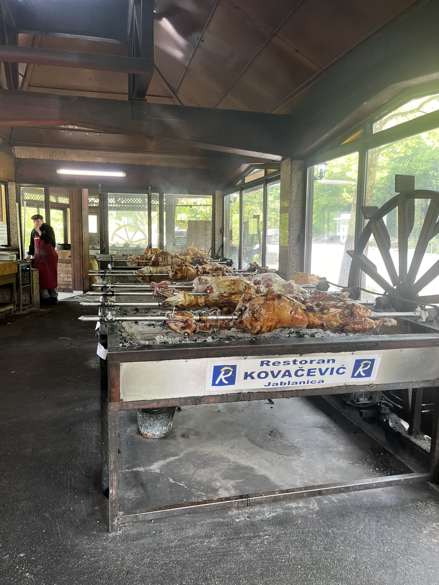 Nehir kenarında Kovacevic restorana oturuyoruz. Dışarıda sıralanmış kuzular ateşte kızarıyorlar. İçerde muhteşem manzara eşliğinde nefis bir yemek yiyoruz.