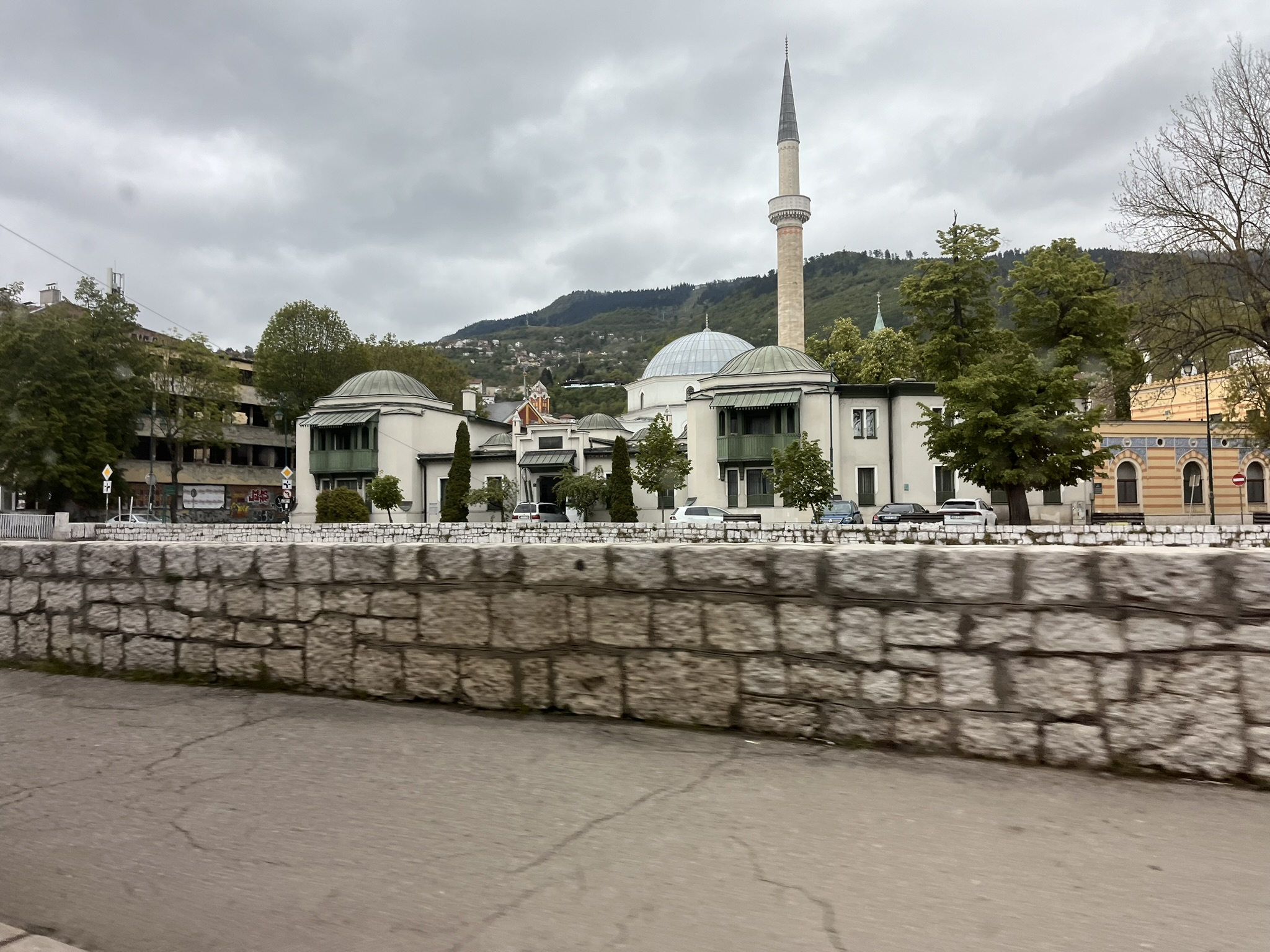 Tramvay hattının bulunduğu Miljacka Nehrine paralel ana caddeden geçerken, Bosna-Hersek Ulusal Müzesini, Saraybosna Güzel Sanatlar Akademisini, Merkez postanesini, Ashkenazi Sinagogunu, Hünkâr Camiini (Fatih Sultan II. Mehmet Camii),1896’da inşa edilmiş Vijećnica, Avusturya-Macaristan İmparatorluğu döneminde belediye binası olarak yapılan şimdiise Milli kütüphane olarak hizmet veren tarihî binayı, Latin Köprüsünü (Latinskaćuprija) görüyoruz.Ve nihayet otelimizin bulunduğu Başçarşı’ya varıyoruz. Burası araç trafiğine kapalı. Girişte yerde Bosna Gülleri göze çarpıyor.16. yüzyılda kurulmuş Osmanlı çarşısında, fazla yürümeden Hotel OldSarajevo’ya varıyoruz. Küçük ve şirin bir yer. Hemen çarşının içinde olması gezme açısından büyük kolaylık sağlıyor. Bavullarımızı bıraktıktan sonra resepsiyondaki bayan tanıdığı bir taksiciyi çağırıyor onunla gezi için anlaşıp yola koyuluyoruz. Şoförümüz Nadir, güler yüzlü konuşkan bir genç. Veliki parkın önünden geçiyoruz. Buradaki modern anıt 1990-1995 yılları arasında savaşta öldürülen çocuklar anısına dikilmiş. Ne kadar üzücü. Yarın Sırp Cumhuriyeti sınırına çok yakın Visegrad şehrine gideceğimiz için otobüs bileti almak üzere tren garının içindeki satış ofisine uğruyoruz. Taksinin gidiş dönüşü çok pahalı geldi. Ama sonra anladık ki otobüs saatleri aynı gün içeresinde gidip gelmek için uygun değil. Aslında orada kalmak gerekirmiş. Jablanica şehrine doğru yol alıyoruz. Neretva nehri ve Jablanica gölünün güzelliklerini taşıyan şehir kuzu çevirmesi ile meşhur.