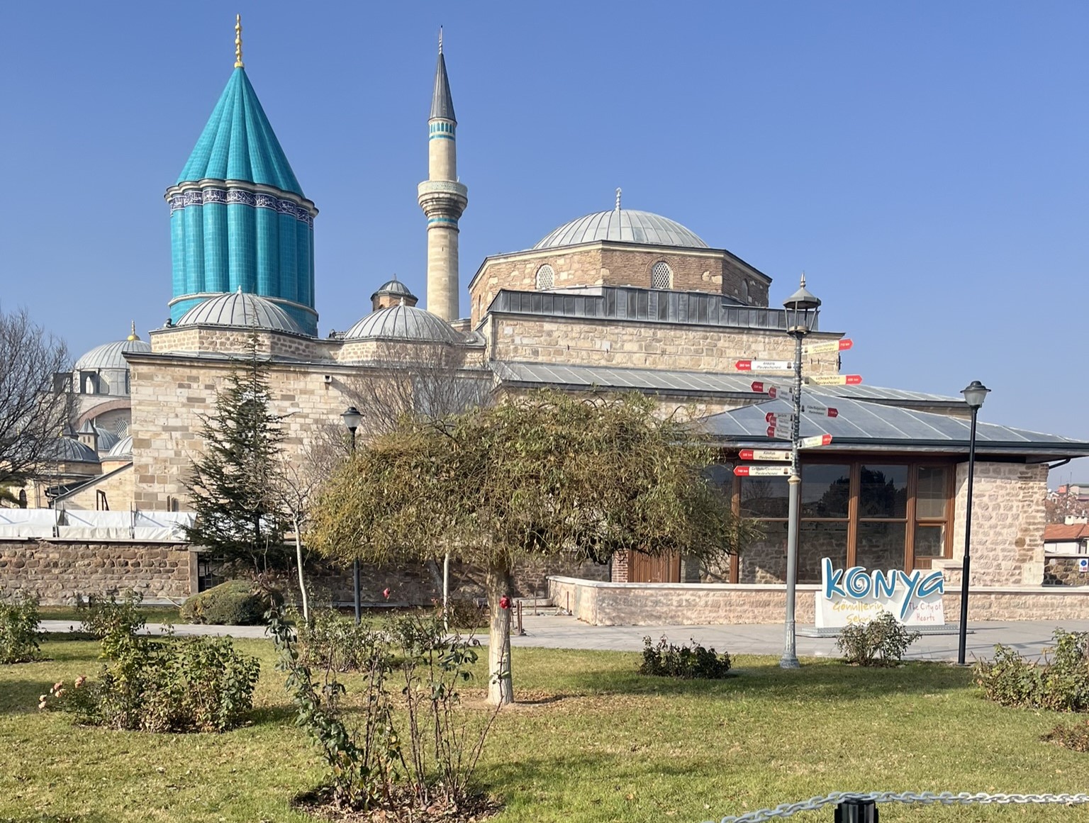 Ertesi gün yine Konya’nın kalbine doğru yürüyoruz. Mevlana Müzesi her zamanki gibi dingin ve vakur. Avluya adım attığımız anda içimizi kaplayan o huzur, sanki yıllardır değişmeden orada bekliyor. Türbenin yeşil kubbesi gökyüzüne doğru yükselirken, insanın iç dünyasında da bir kapı aralanıyor.