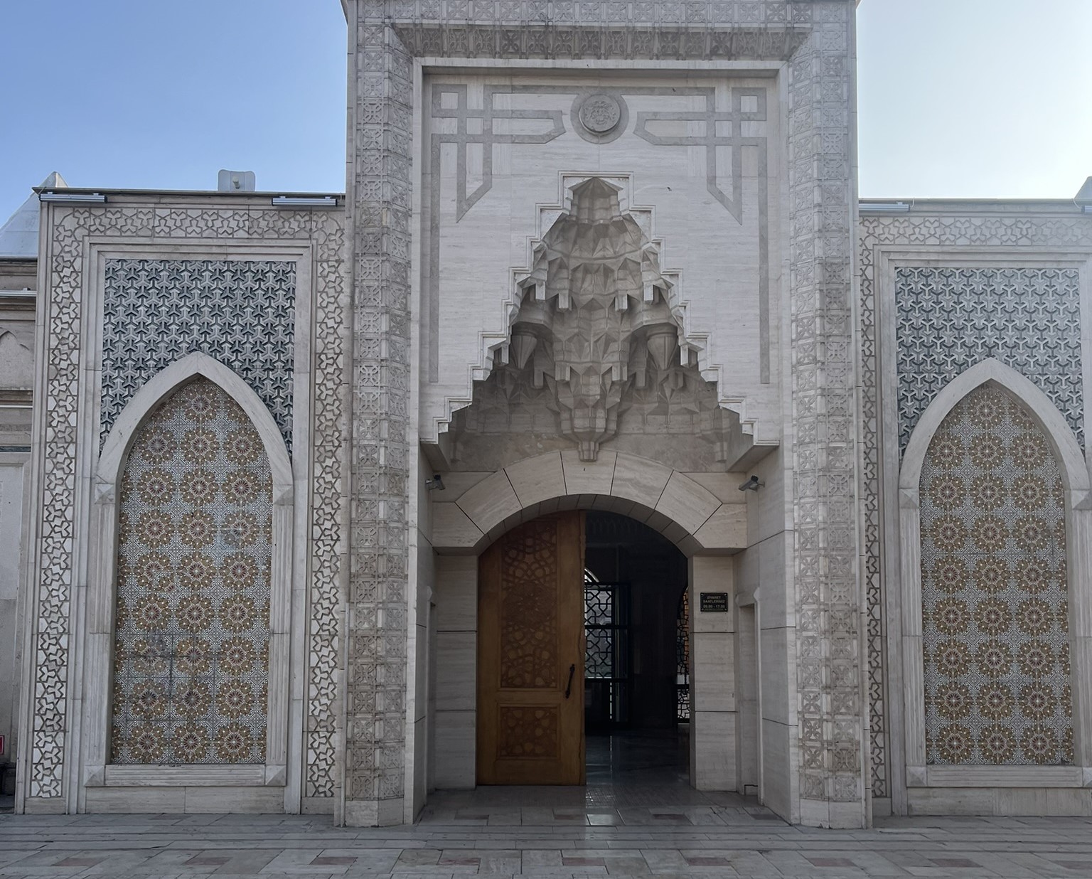 Sille taşından inşa edilmiş tek katlı yapı, daha taç kapısında ziyaretçisini büyülüyor. Selçuklu taş işçiliğinin ince detayları, sabrın ve estetiğin kusursuz birleşimi gibi. Kapının üzerindeki geometrik motifler ve derin oyma süslemeler, adeta taşın dile gelmiş hâli.