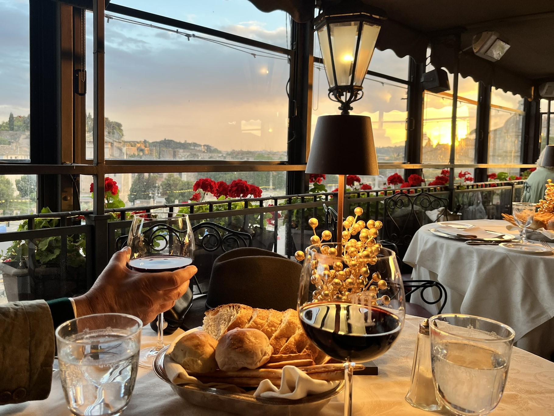 Akşam, Otel Forum Roma’nın çatı terasında, Roma manzarası eşliğinde muhteşem bir yemek ile evlilik yıldönümümüzü kutladık. Gece ışıklandırılmış Roma Forumu adeta bambaşka bir büyüye bürünmüş, taşların ve sütunların silueti ışıkla daha da etkileyici hale gelmişti.