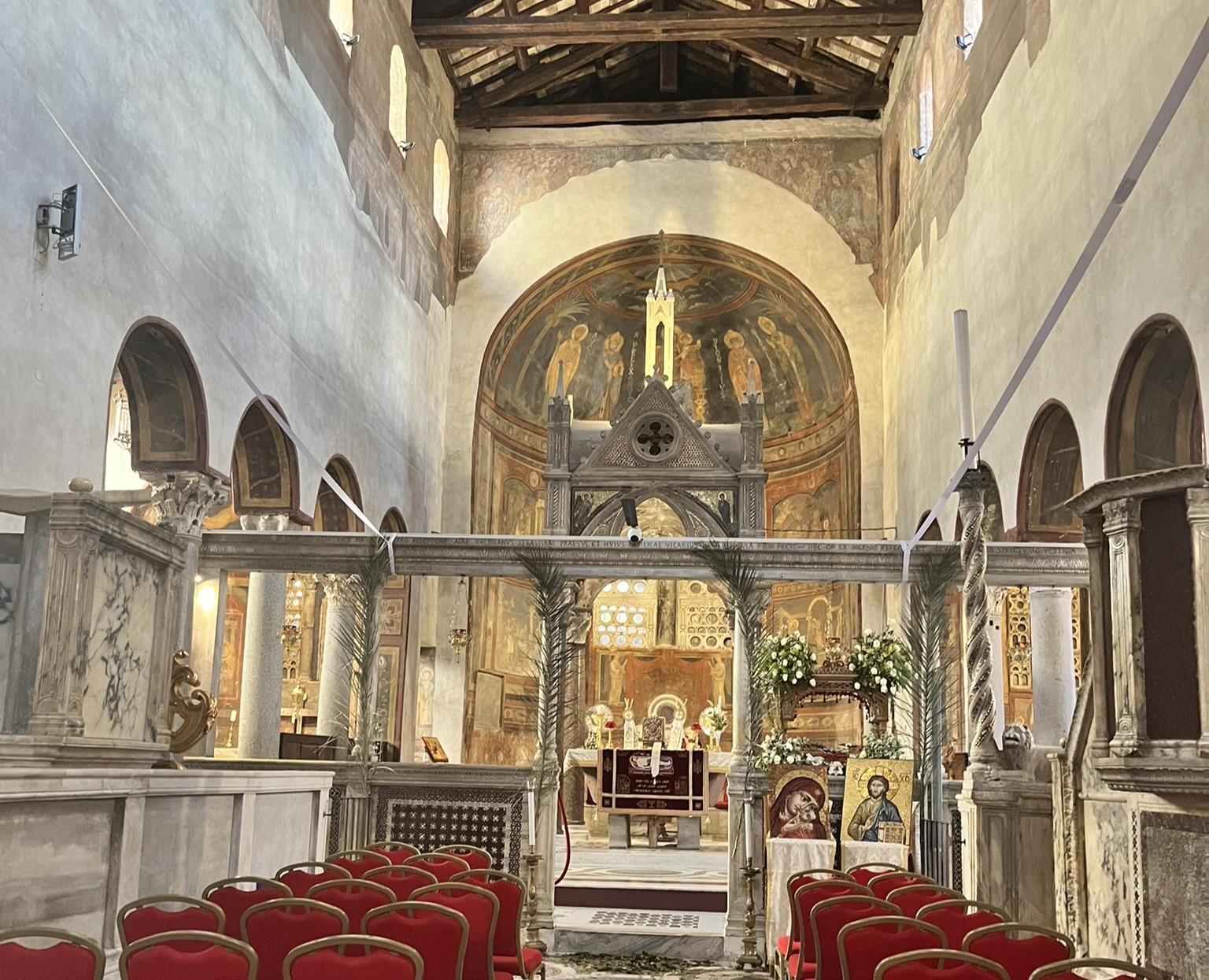 Yine de gezimizi sürdürerek Tiber Nehri boyunca ilerliyoruz ve antik dönemde sığır pazarı olarak kullanılan Forum Boarium’a ulaşıyoruz. Burada, ziyaret edeceğimiz ilk durak Santa Maria in Cosmedin Bazilikası.