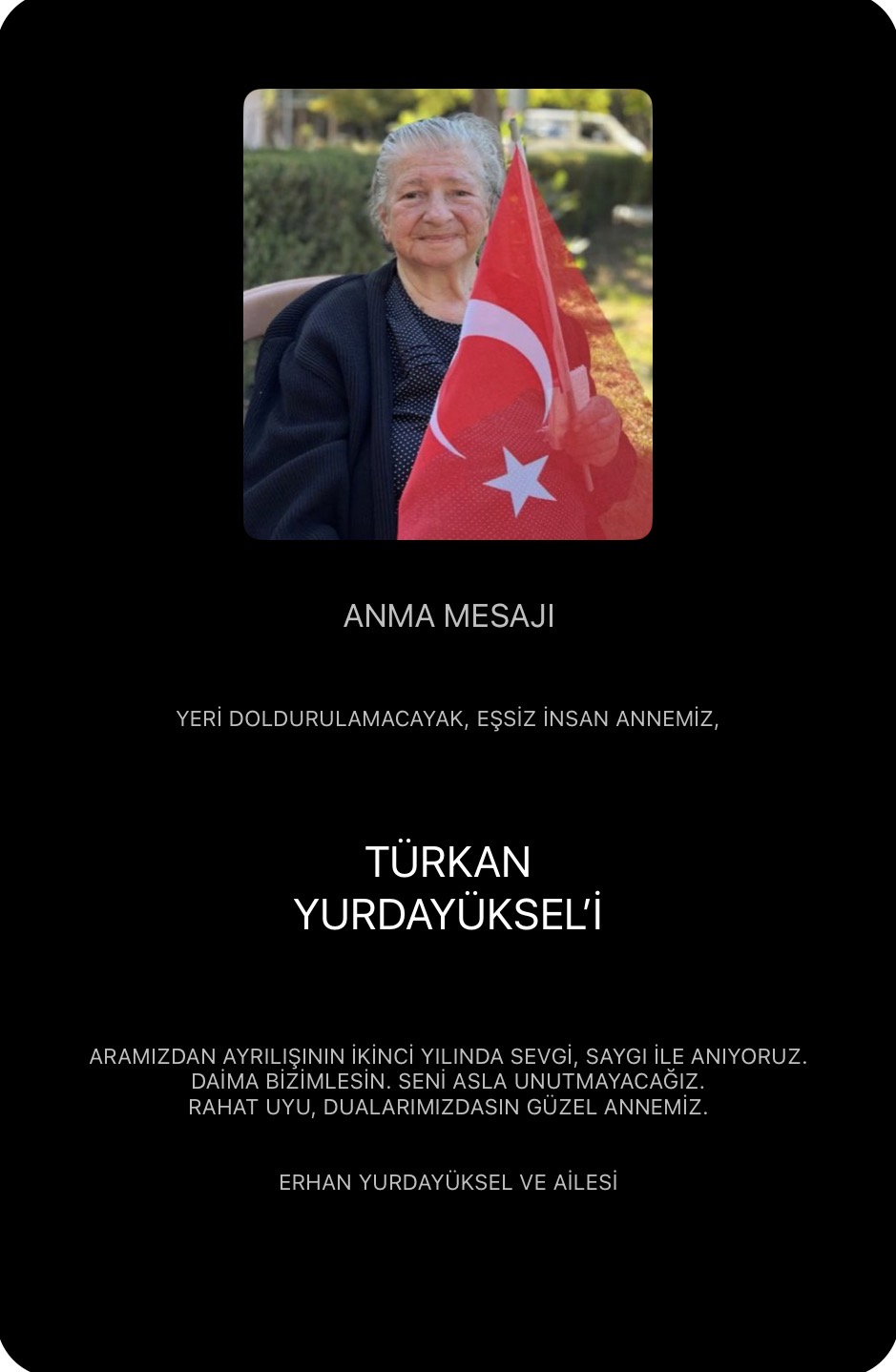 Facebook Follow on Facebook Add to Google+ Connect on Linked in Subscribe by Email Print This Post Türkan Yurdayüksel Anma Mesajı Erhan Yurdayüksel, Türkan Yurdayüksel, YurdayükselTürkan Yurdayüksel: Yeri Doldurulamayacak Eşsiz İnsan Dualarımızdasın added by admin on 01/03/2026View all posts by admin →