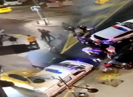 Kavga sırasında taraflardan biri eline aldığı demir dubayı, karşı gruptan bir kişinin başına fırlattı. O anlar cep telefonu kamerasına saniye saniye yansıdı.Kavga seslerini duyan vatandaşların ihbarı üzerine olay yerine çok sayıda polis ekibi sevk edildi. Kısa sürede olay yerine gelen ekipler, kavgaya müdahale ederek tarafları ayırdı. Kavgada ölen ya da yaralanan olmazken, tarafların birbirlerinden şikayetçi olmadığı öğrenildi.