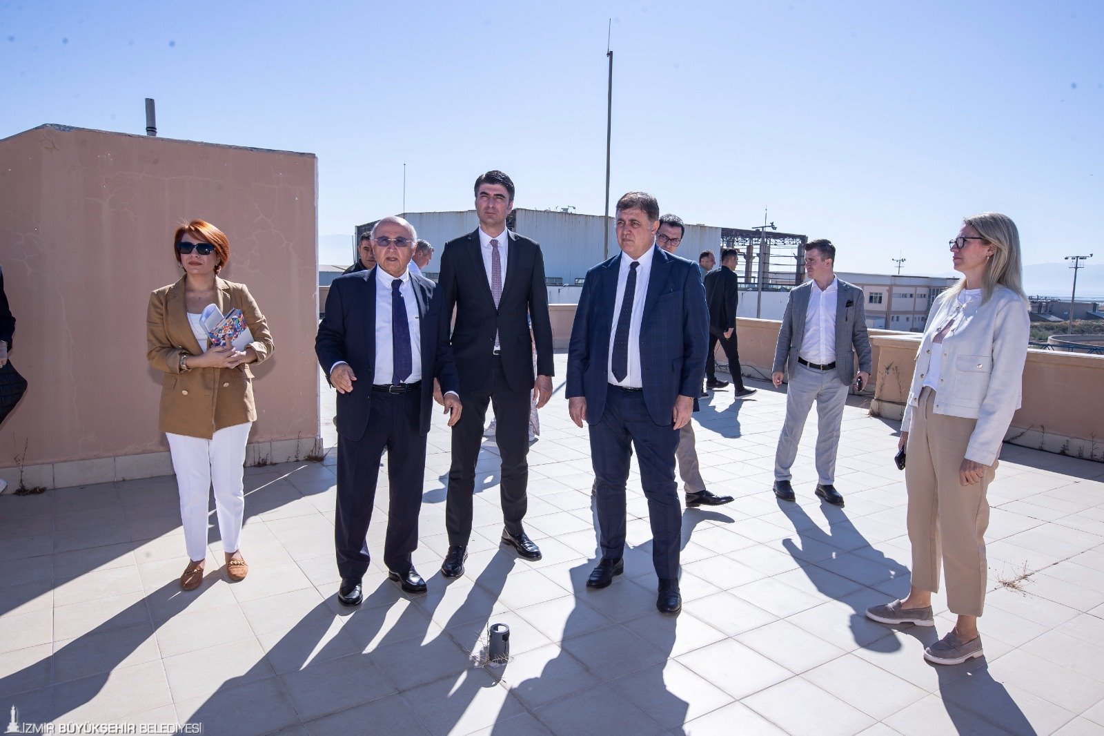 Çiğli Atıksu Arıtma Tesisi’nin verimini yükseltecek revizyon çalışmaları ve arıtma kapasitesinin artırılmasını sağlayacak 4. faz inşaatı tüm hızıyla devam ederken İzmir Büyükşehir Belediye Başkanı Dr. Cemil Tugay çalışmaları yerinde inceledi. İZSU Genel Müdürü Gürkan Erdoğan, İZSU Genel Müdür Yardımcısı Hakan Özel, Atıksu Arıtma Dairesi Başkanı Mürüvvet Kılıç, Projeler Dairesi Başkanı Münevver Elele, mevcut durum çalışmalar hakkında Başkan Tugay’a bilgi verdi.