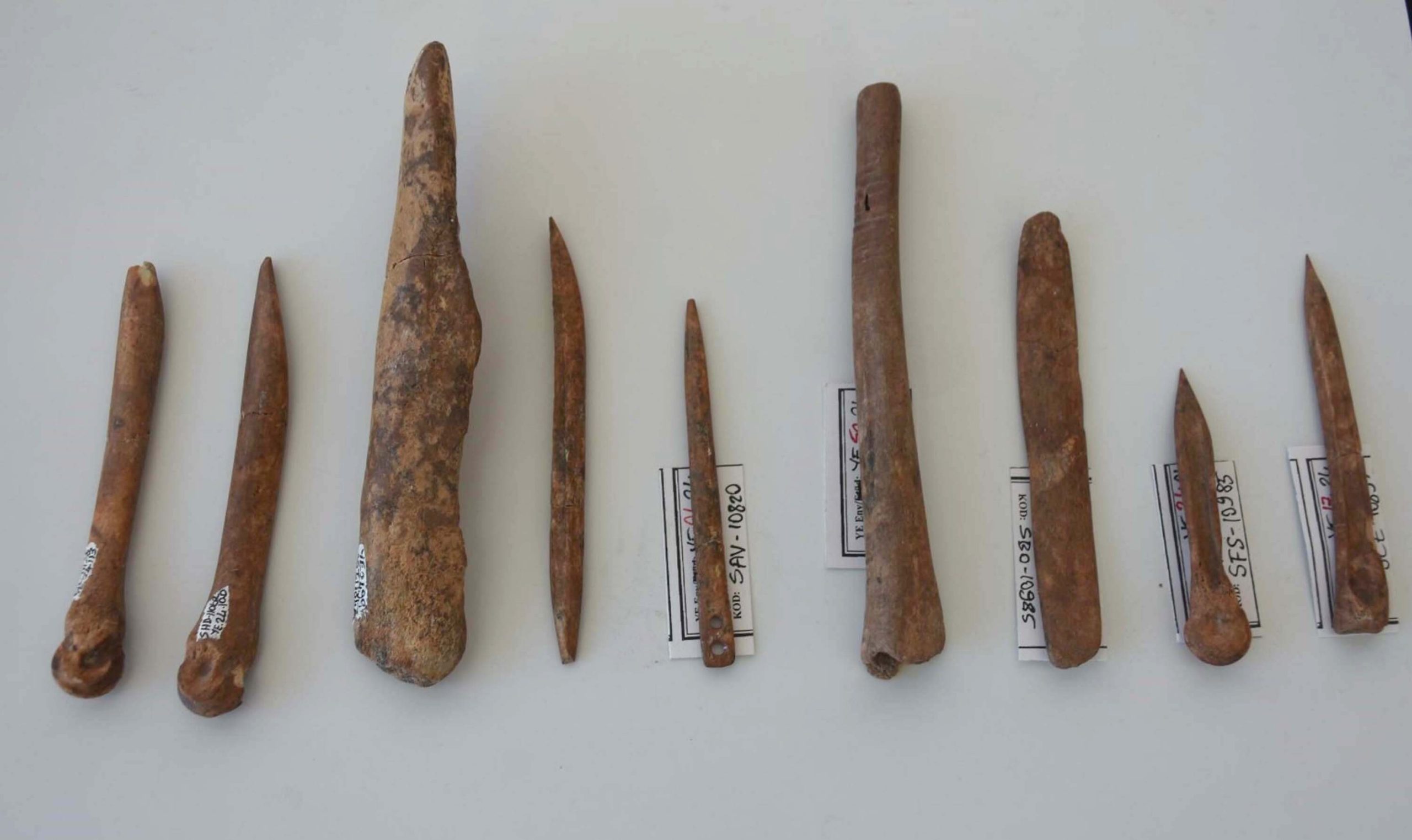 İzmir’de 8 bin 500 yıl öncesine ait kemik malzemeden iğne ve kesici aletler bulundu. Doç. Dr. Zafer Derin, “Bu aletler farklı boyutlarda olabiliyor. Ayrıca günlük yaşam içindeki en doğal maddeyi bile el aletine dönüştürerek, kullandıklarını gösteriyor” ifadelerini kullandı.