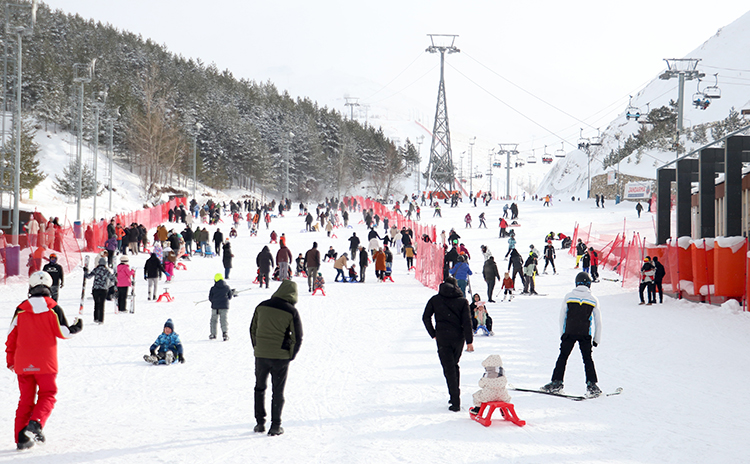 owboard ve kayak takımlarıyla uzun pistlerden kayan kayakseverlerin yanı sıra aileleriyle merkeze gelen çocuklar da kızaklarla kayarak tatillerini değerlendiriyor.