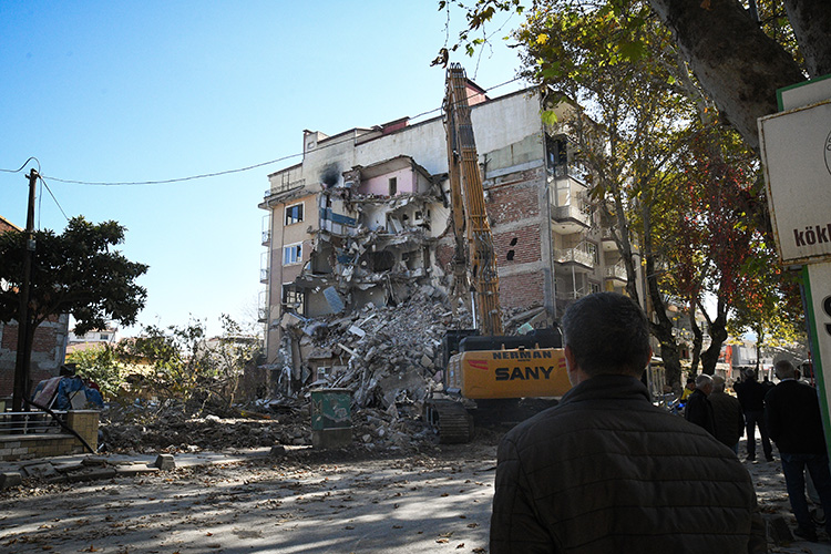 Balıkesir’in Sındırgı ilçesinde meydana gelen depremin ardından hasarlı yapılarda kontrollü yıkım ve enkaz kaldırma çalışmaları devam ediyor.