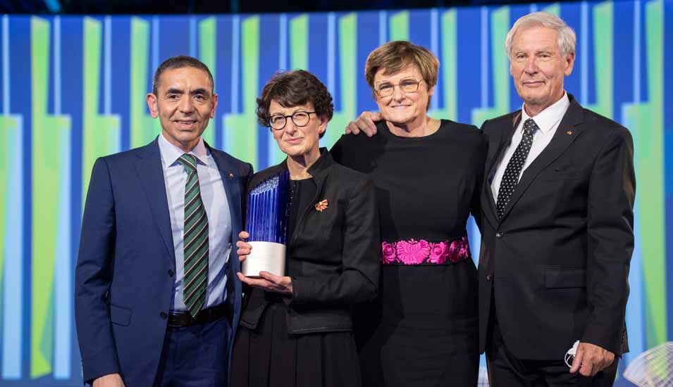 Federal Eğitim ve Araştırma Bakanı Anja Karliczek, ödüle ilişkin yaptığı açıklamada, BioNTech’in pandemide elde ettiği başarının çığır açıcı ve ilham verici olduğunu belirterek, “Güvenli ve etkili bir aşının geliştirilmesiyle BioNTech araştırmacıları dünya çapında milyonlarca insanın hayatını kurtardı ve onların ciddi hastalıklardan korunmasına katkıda bulundu. Böylece BioNTech, bir yıl içinde Kovid-19 pandemisine karşı mücadelede bir dönüm noktası oluşturdu. Bu başarıya, uzun yıllara dayanan araştırma fonumuzla katkıda bulunabildiğimiz için gurur duyuyorum.” ifadelerini kullandı.